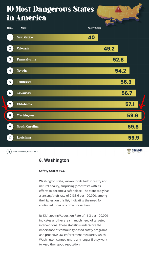 Washington the 8th most dangerous state: